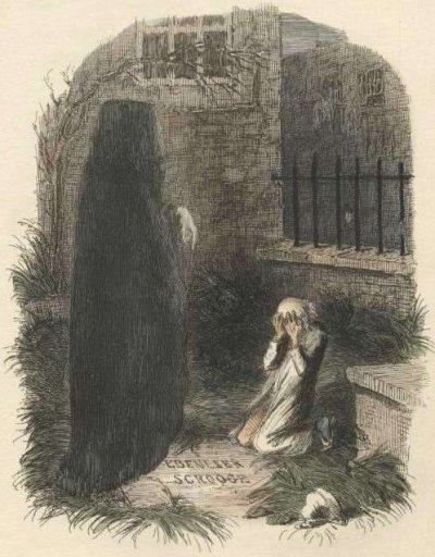 It has it all, ghosts, gloom, despair, human monsters ( my favorite kind of monster ) and at the end when Scrooge is in the Graveyard and has guessed exactly who is in that uncared for grave and says: