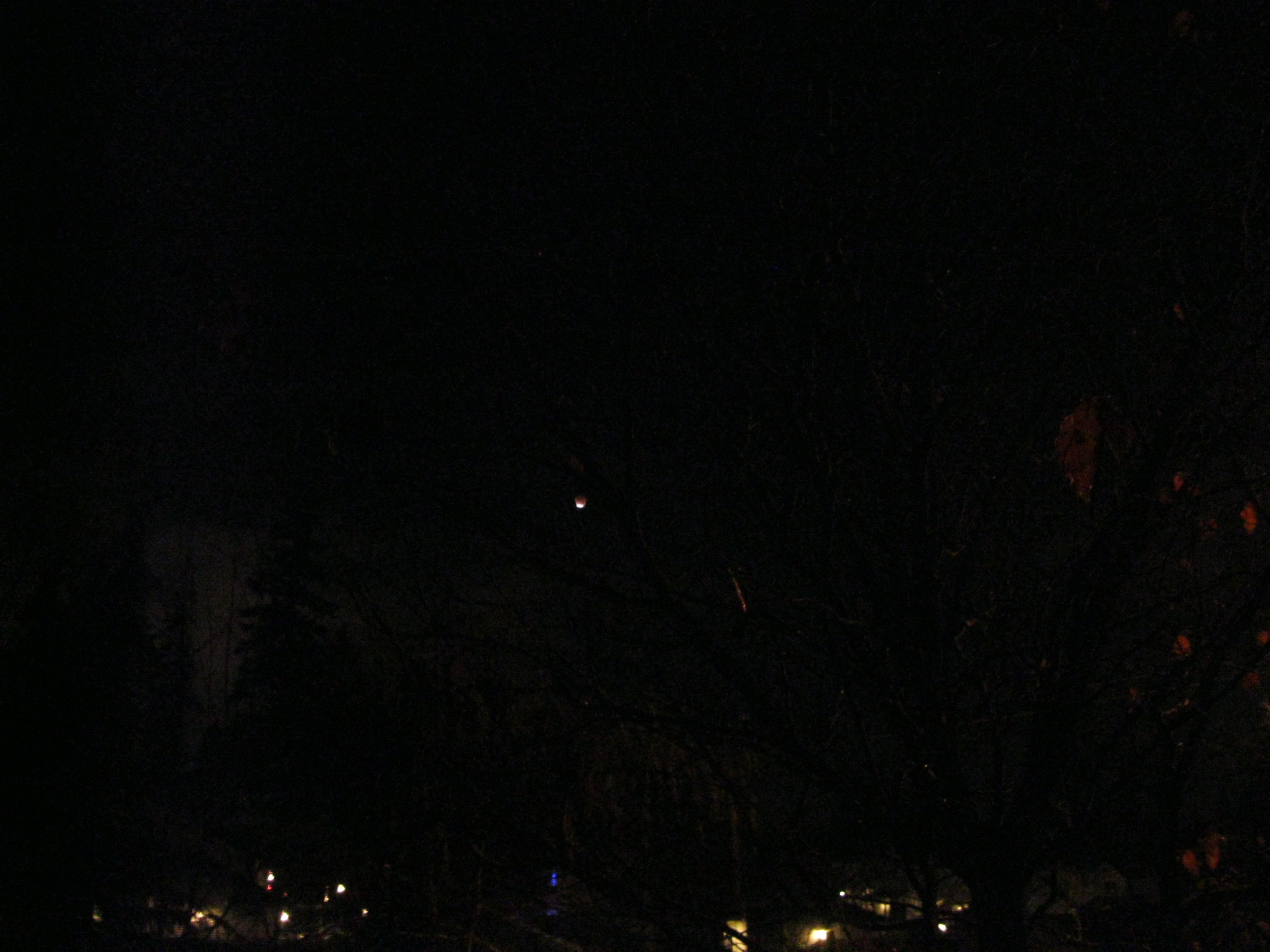 As we watched I realized that from my cat’s grave you could see the Moon from a very interesting perspective through the tree that is over Wolfie’s grave.
